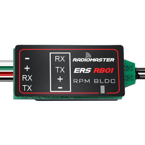 The ERS-RB01 Brushless Tachometer measures RPM by tapping directly into any two wires of a brushless ESC output. The sensor captures precise speed data, sends it to a compatible ExpressLRS receiver via the CRSF interface, and relays the information back to your EdgeTX radio for real-time monitoring. Ideal for any application requiring accurate RPM feedback.
