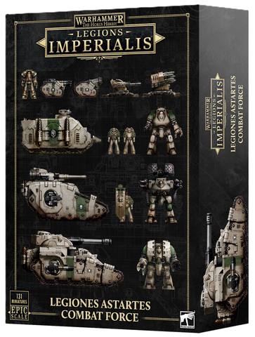 This packed box of 131 individual miniatures contains two Legion Command Squads, eight Tactical Legionary bases, two Legion Terminator bases, two Assault Marine bases, two Support Legionary bases, two Heavy Support Legionary bases, four Contemptor Dreadnoughts, four Leviathan Dreadnoughts, four Deredeo Dreadnoughts, four Rapiers, four Tarantulas, five Rhino transports, four Kratos tanks, and four Sicaran tanks. It also comes with three Legiones Astartes Vehicle transfer sheets, each with 1130 decals.